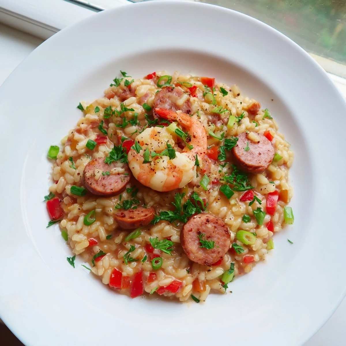 Dieses Gericht verbindet italienisches Arborio-Reisrisotto mit der würzigen Vielfalt des Creole Jambalaya. Saftige Garnelen und herzhafte Andouille-Wurst sorgen für kräftigen Geschmack. Paprika, Sellerie und Zwiebeln verleihen Frische und Aroma, während scharfe Gewürze wie Paprika und Cayennepfeffer für den perfekten Kick sorgen. Mit Weißwein und langsam erwärmter Brühe wird eine cremige Konsistenz erreicht, die das Gericht besonders wohltuend macht. Ein beliebtes Fusion-Hauptgericht für Mittel- bis Fortgeschrittene.